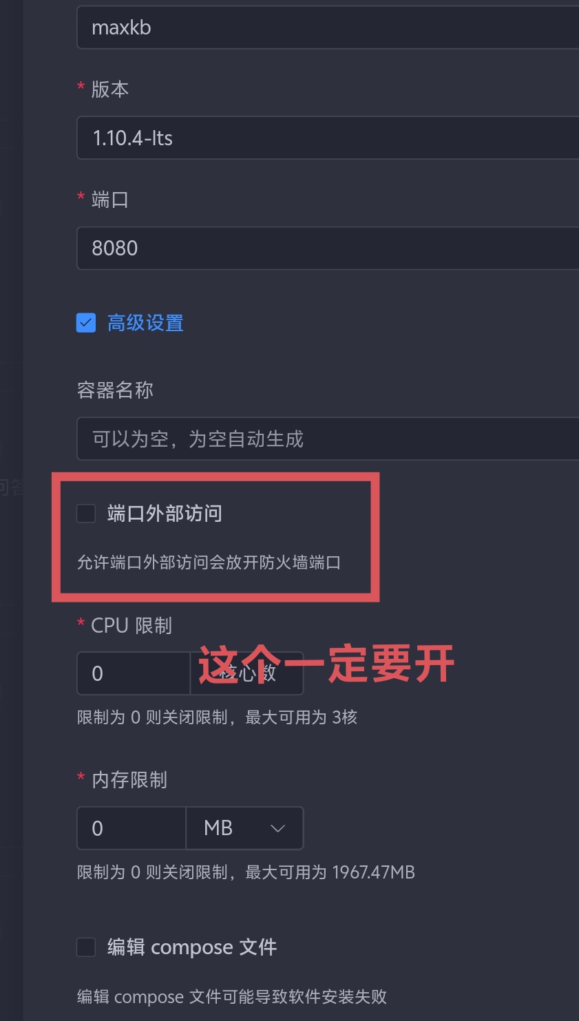当然,如果你不想那么急着进网站的话也可以不开这个端口外部访问,套上域名后也是一样可以访问的。