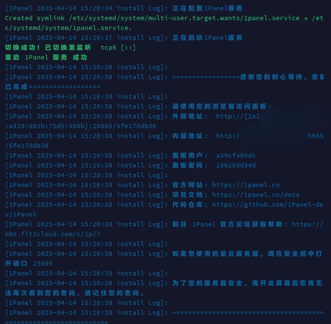 那么你已经成功地安装好了1Panel面板!👏