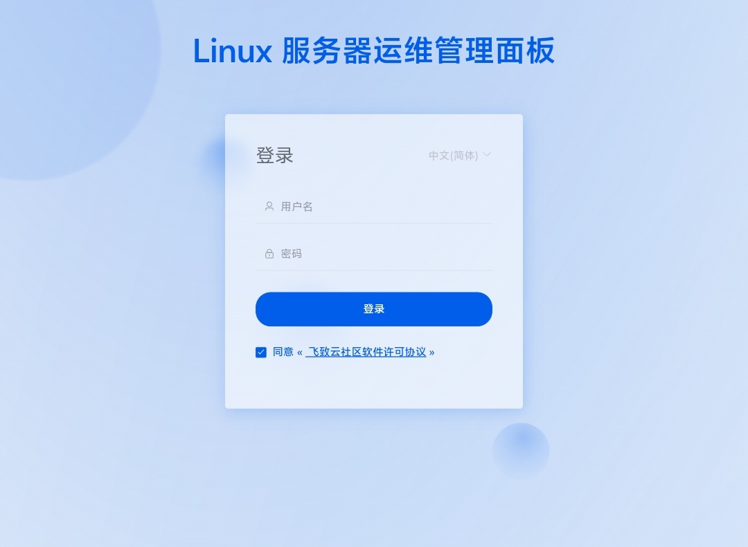 用户名和密码即是在VPS上显示的“面板用户”和“面板密码”,输入对应的内容后点击登录即可登录进你的1Panel后台。