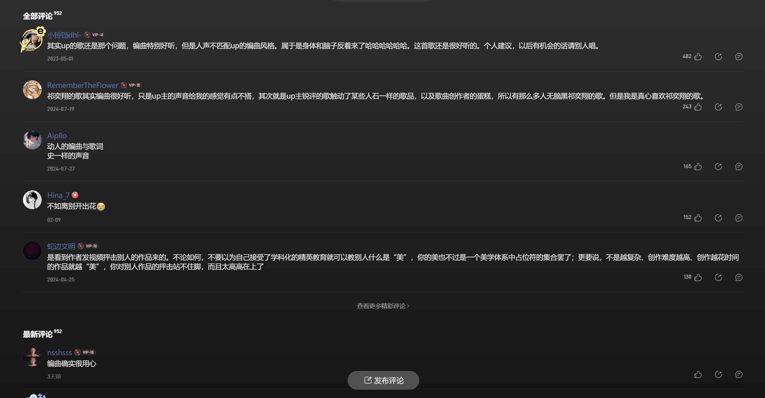 上文说过,他的哔哩哔哩视频主要是锐评网络神曲,只要是很多观众和粉丝们让他评价的他都会评价。