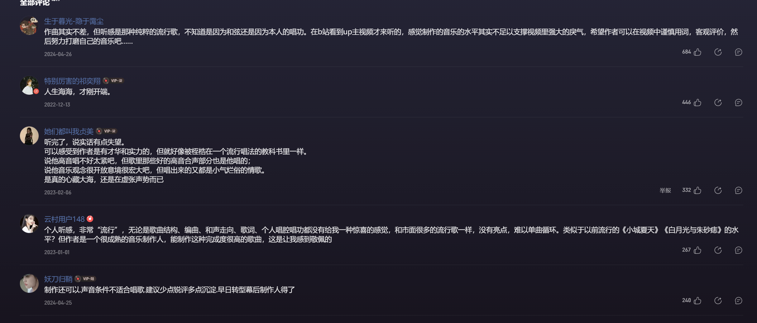 上图截自网易云音乐歌曲《人生海》-祁奕翔 评论区
