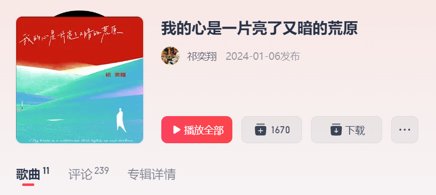 所以我带着我的好奇,打开了网易云音乐(别的平台我没下略略略),听了听他的这张专辑。